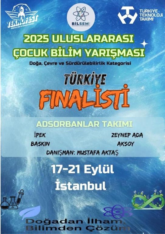 Adsorbanlar Takımımız TEKNOFEST 2025 Uluslararası Çocuk Bilim Yarışması'nda Türkiye Finalisti oldu.